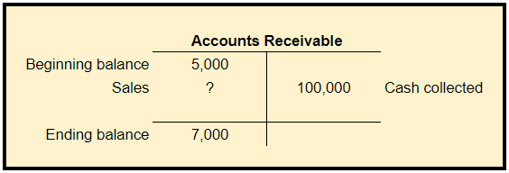 Beginning accounts receivable + accrual sales – cash collections on account = ending accounts receivable
